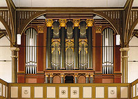 Die Ratzmann-Orgel der Bergkirche Niedergründau wurde gleichzeitig mit der Kirche 1839/40 durch die Firma Ratzmann (Ohrdruf/Thüringen) erbaut. Der Orgelbauer Georg-Franz Ratzmann überliess die Arbeiten seinem Sohn Wilhelm-August, der anschliessend im benachbarten Gelnhausen eine eigene Orgelbauwerkstatt gründete. Das grosse Orgelwerk gehört zu den wenigen noch fast ganz original erhaltenen Instrumenten jener Zeit. Besonderheiten sind das überwiegende Pfeifenmaterial aus Holz, 32‘-Register im Pedal und der Spieltisch im Gehäuse. Nach einer umfangreichen Restaurierung 2007/2008 wurde die Orgel im April 2008 wieder eingeweiht. Seitdem finden regelmässig Orgelkonzerte statt. |
