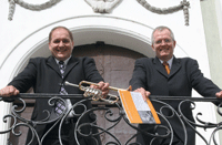 | Der Trompeter Rainer Hauf und der Organist Thomas Rothfuß konzertieren seit 1994 in der Kombination Trompete und Orgel mit großem Erfolg. Die beiden Musiker stehen gleichermaßen für Präzision und Perfektion an ihren Instrumenten und ergänzen sich hervorragend. Eine rege Konzerttätigkeit, vorwiegend im süddeutschen Raum, Gottesdienstübertragungen im Hörfunk sowie die Einspielung von vier CDs, davon zwei als Duo, und zwei mit dem Nördlinger Bachtrompeten-Ensemble, dessen Leiter Rainer Hauf ist, dokumentieren das hohe künstlerische Niveau dieses erfolgreichen Duos. |