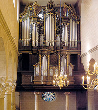 Die hoch über den Main aufragende karolingische Justinuskirche – das älteste Bauwerk Frankfurts – hat eine prachtvolle Onimus-Orgel, deren Bau von 1736 bis 1740 dauerte. Die barocke Orgel wurde in den folgenden Jahrhunderten bis nach dem Zweiten Weltkrieg mehrfach dem Zeitgeschmack angepasst und damit ihres ursprünglichen Klangbildes beraubt. 1987/88 wurde in den barocken Orgelprospekt eine neue, hervorragende Konzertorgel der Fa. Kuhn, Männedorf (Schweiz) eingebaut. Hierdurch hat sie ihr ursprüngliches Aussehen, vor allem aber eine einmalige Konzertqualität zurückgewonnen. |