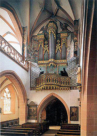Die Orgel der Basilika St. Valentin und Dionysius zu Kiedrich im Rheingau wird oft als die „älteste Orgel Deutschlands“ bezeichnet. Falsche Interpretationen von Pfeifennummerierungen führten zum Beispiel zur Annahme eines angeblichen Erbauungsjahres 1313. Tatsächlich ist diese Orgel aber erst etwa um 1500 entstanden, wobei freilich weder das genaue Jahr noch der Erbauer bekannt sind. Das Instrument wurde mehrfach umgebaut und vergrössert, unter anderem 1653 durch Johann Wendelin Kirchner. Im Herbst 2010 erhielt die Orgel den päpstlichen Ehrentitel „Basilika minor“. |